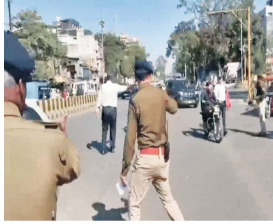 शब्द अग्नि न्यूज़ । इंदौर। ट्रैफिक पुलिस की सख्त कार्रवाई लगातार जारी है। बिना हेलमेट दोपहिया वाहन चलाने वालों के खिलाफ शहर के अलग- अलग चौराहों पर चालान बनाए जा रहे हैं। साथ ही वाहन चालकों को ट्रैफिक नियमों का पालन करने और हेलमेट पहनकर वाहन चलाने के लिए जागरूक भी किया जा रहा है।