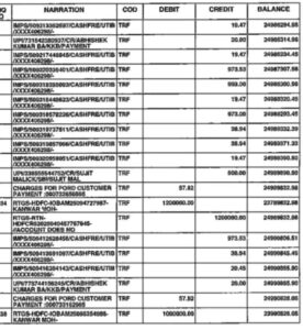 2 से 5 अप्रैल के बीच, आरटीजीएस, यूपीआई और आईएमपीएस के माध्यम से पार्टी खाते में ₹19, ₹20, ₹500 से ₹900 तक के कई छोटे हस्तांतरण किए गए। ये जमा अलग-अलग व्यक्तियों से आए थे।