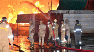आग बुझाने पहुंचे दमकलकर्मी